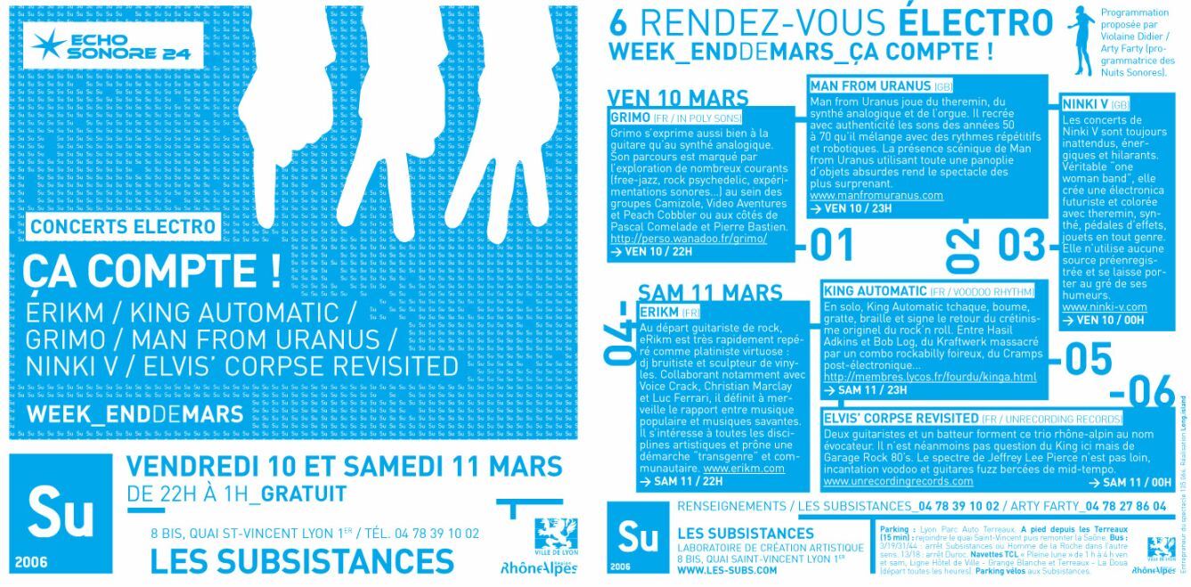 Dominique Grimaud le 10 mars 2006 aux Subsistances à Lyon dans le cadre d'Echo Sonore #24 - le flyer.